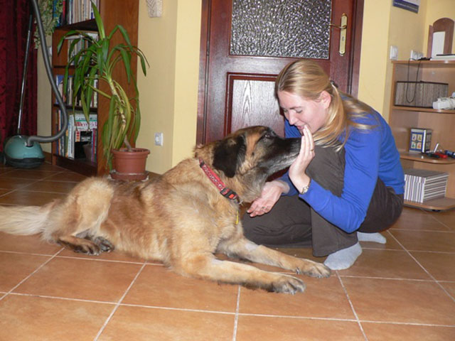 Hamarosan, a szólánc hatásos ereje segítségével kerültünk kapcsolatba egy lehetséges befogadó gazdával. Az új gazdi nagy szeretettel fogadta az idős kutyát, számára nem volt probléma a kor. Eddig is több nagytestű kutyája volt már, s most is egy több mint 10 éves ír-szetterre emlékeztető eb szerető gazdája.